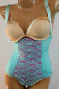 - Mesh lace bodice overlay with contrast fabric color underlay